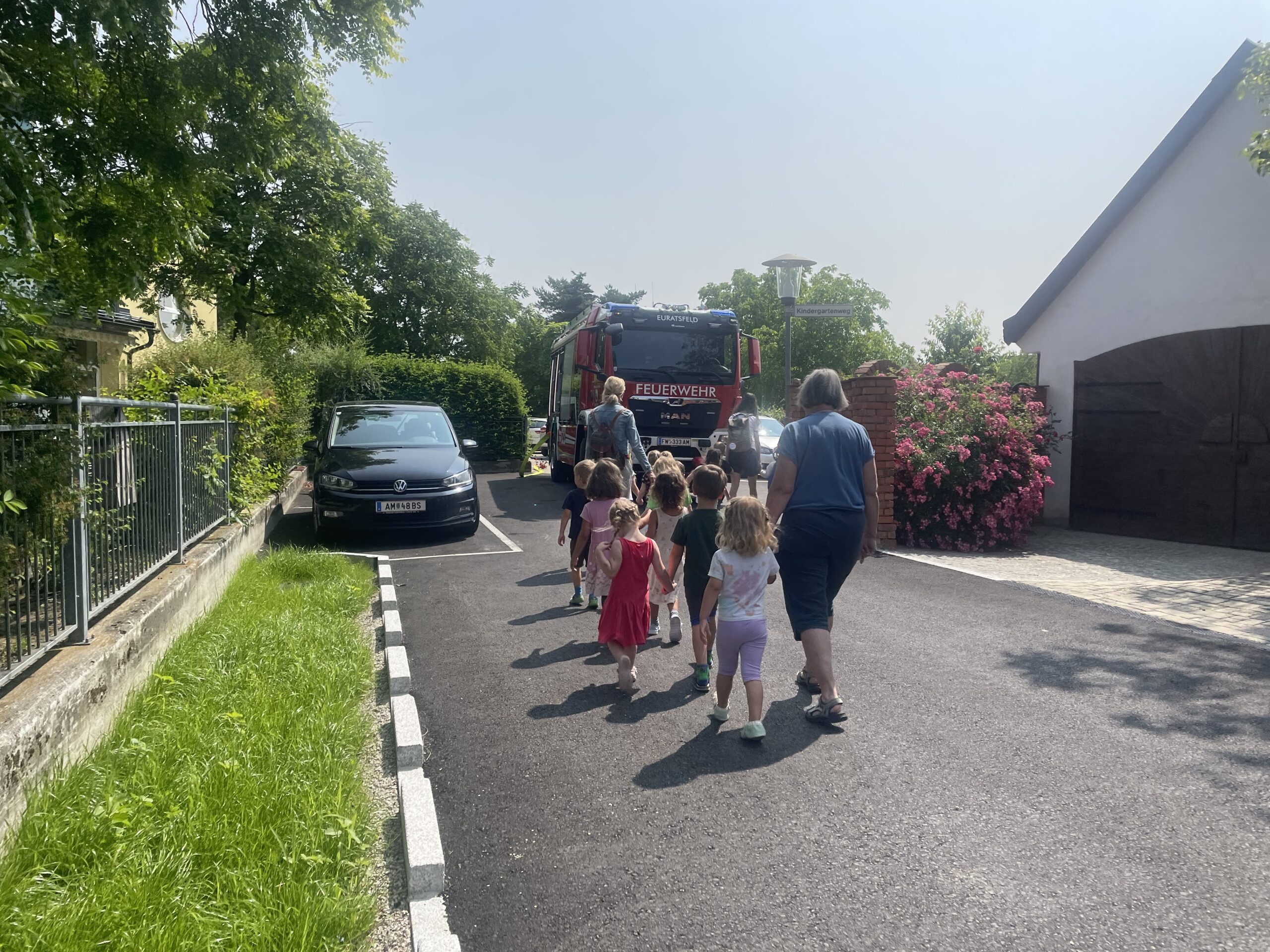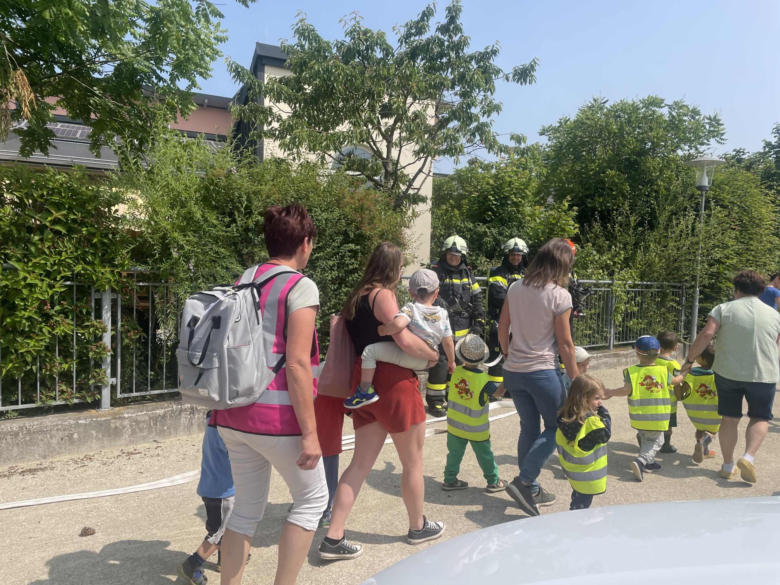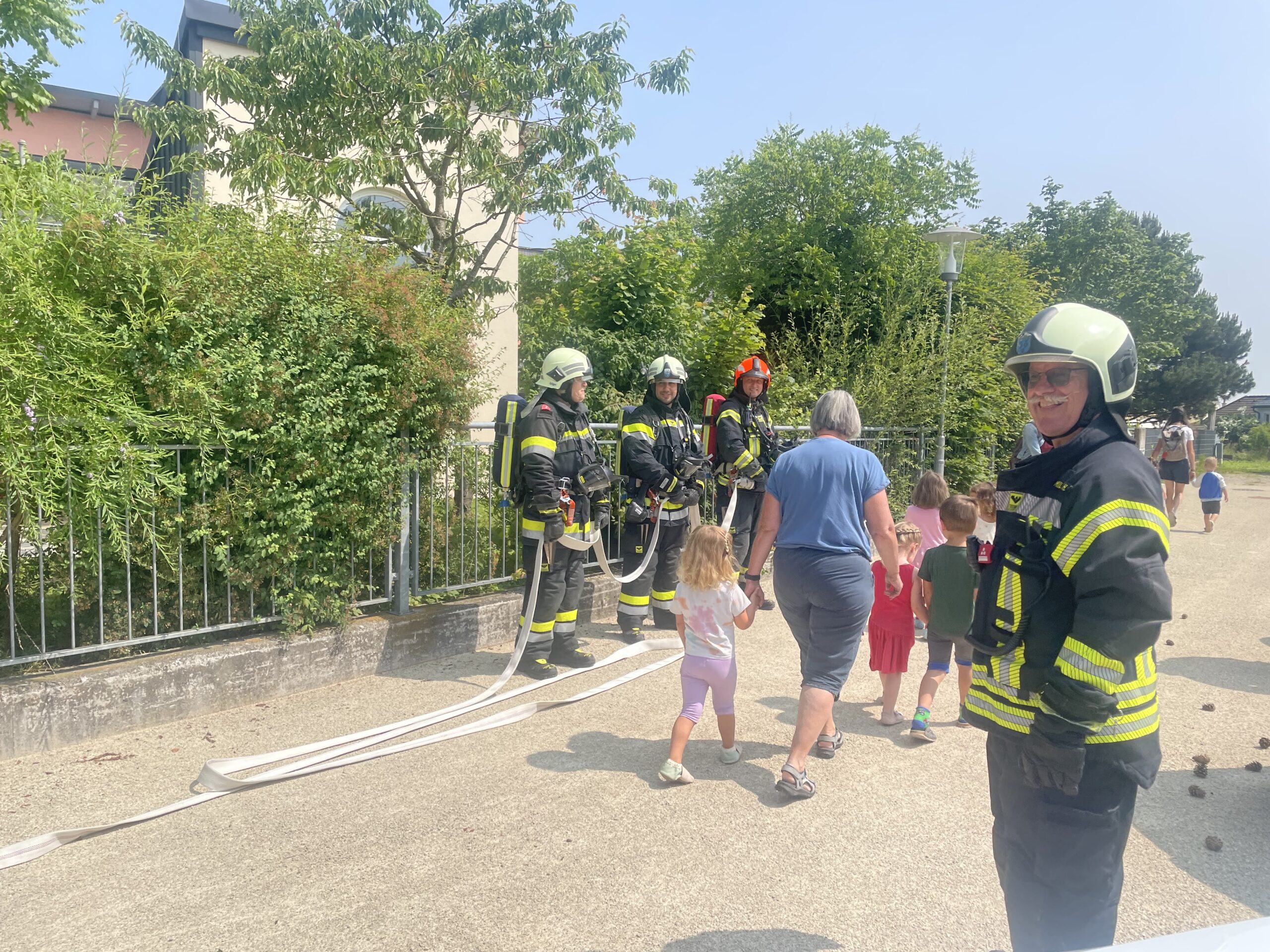 Seit einigen Jahren wird seitens der Feuerwehr Euratsfeld, einmal im Jahr, eine Räumungsübung in einer Bildungseinrichtung begleitet und beobachtet. Dieses Jahr war der Kindergarten inkl. Tagesbetreuung an der Reihe für die Evakuierungsübung. Bereits eine Woche vor der Übung, besuchten die beiden freiwilligen Feuerwehren die Kindergartenkinder und verbrachten gemeinsam einen Vormittag. Seitens der Feuerwehr wurde die vor Ort installierte Brandmeldeanlage ausgelöst. Mittels Blitzlichter wurden die Kinder, Pädagogienen und Betreuerinnen über den Beginn der Räumungsübung informiert. Organisiert und geordnet verliesen die Kinder und das gesamte Personal, das Gebäude zum Sammelplatz. Die FF Euratsfeld lud zur Übung auch die zweite örtliche Feuerwehr Aigen ein. Beim vereinbarten Sammelplatz erkundete der Einsatzleiter die Vollständigkeit der Personen. Damit die Kids beim zurückgehen etwas zu schauen haben, wurde bei beiden Eingängen eine Löschleitung vorbereitet und die Kameraden/-innen empfingen die Kinder. Dem Personal wurde die Kennzeichnung und die Aufgaben der Einsatzleitung, welche beim Sammelpunkt errichtet wurde, erklärt. Zufrieden mit dem Ablauf und Organisation der Räumung verabschiedete sich die Feuerwehr von den Kindern.