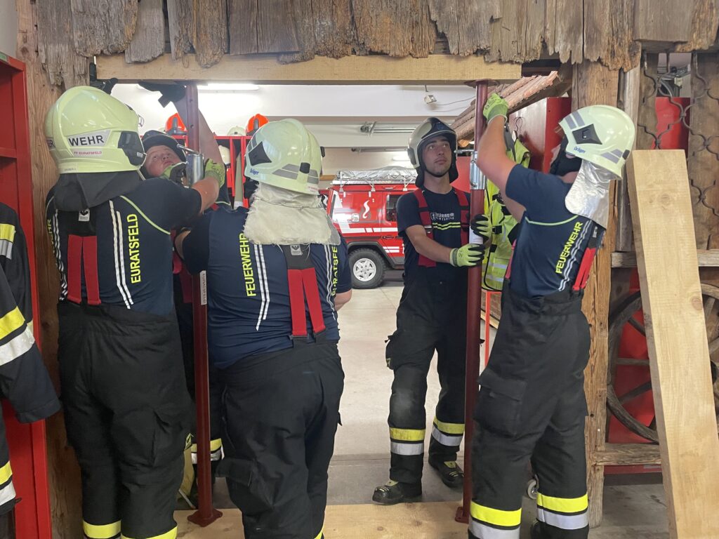 Aufgrund unterschiedlichster Situation kann es für die Einsatzkräfte der Feuerwehr notwendig sein, eine Baugrube zu sichern oder einsturzgefährdete Objekte oder Fahrzeuge bei Verkehrsunfällen zu unterbauen, um einen sicheren Einsatzbereich zu gewährleisten. Geübt wurde mit der Ausrüstung, welche der FF Euratsfeld zu Verfügung steht, und in der Theorie wurden weitere Möglichkeiten besprochen. Leider ermöglichte die Witterung nicht die geplante Übung im Freien und deshalb mussteq kurzerhand improvisiert werden. Seitens der Übungsausarbeitenden wurden die Bedienungen erleichtert und auf einen Teil der Schutzausrüstung, in bedacht der sommerlichen Temperaturen, verzichtet. Die Teilnehmer frischten ihr Wissen auf beziehungsweise konnten sie wieder viele wichtige Erkenntnisse für den Einsatzdienst gewinnen. Katzengruber Michael