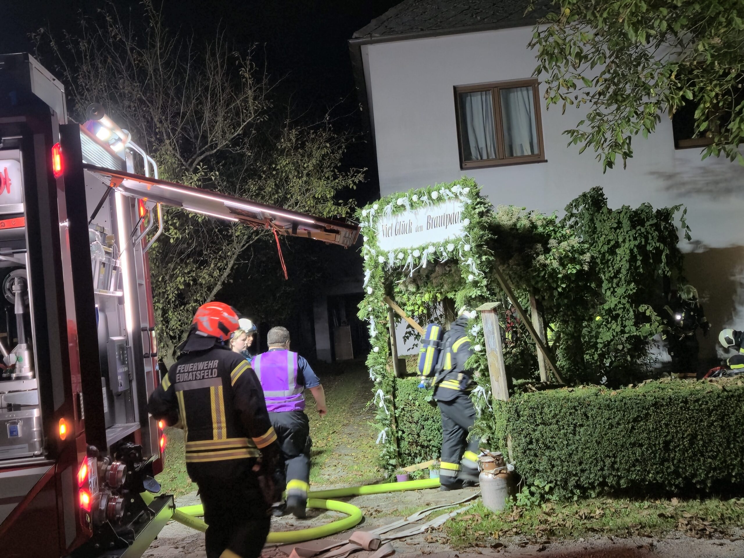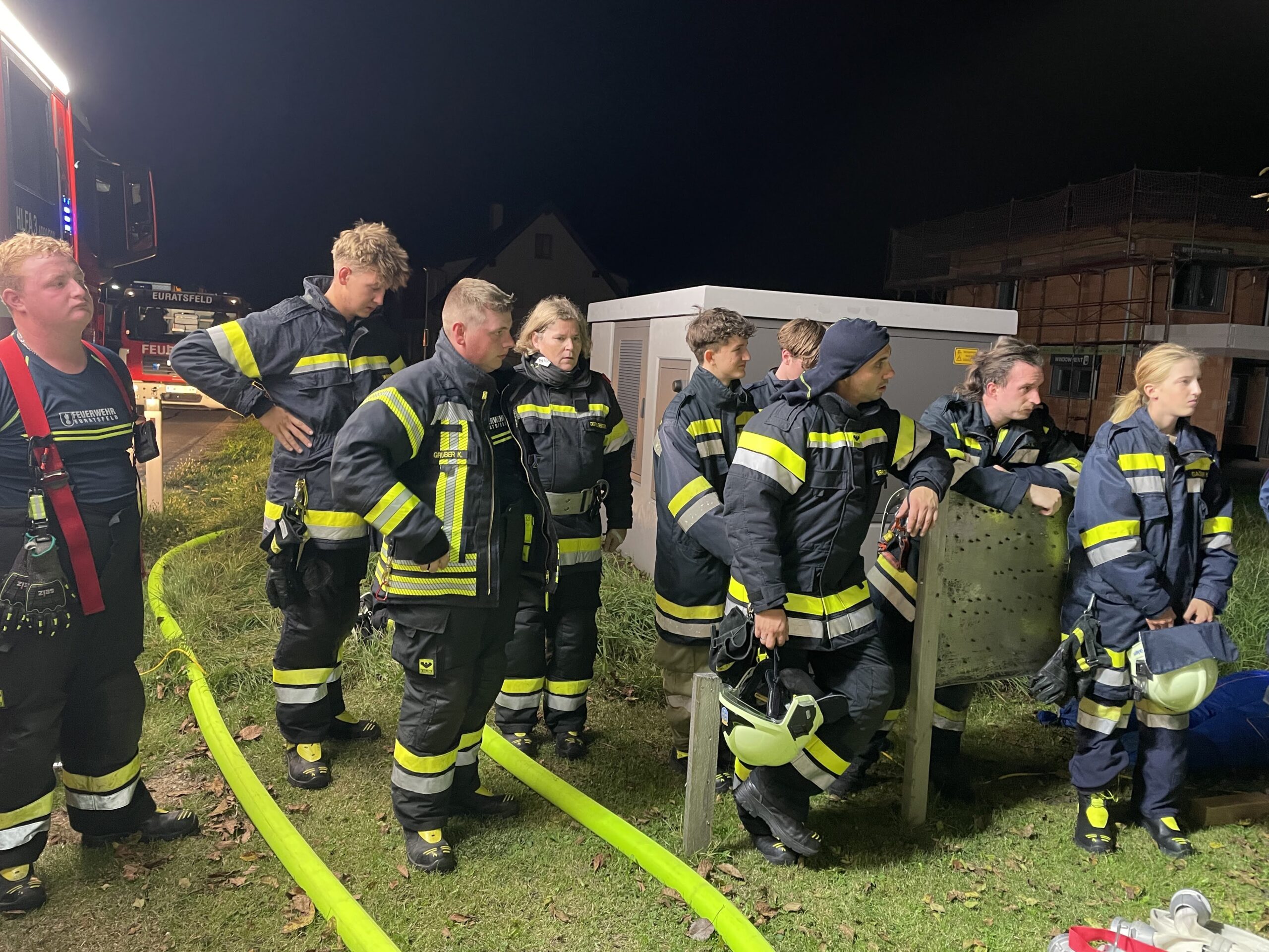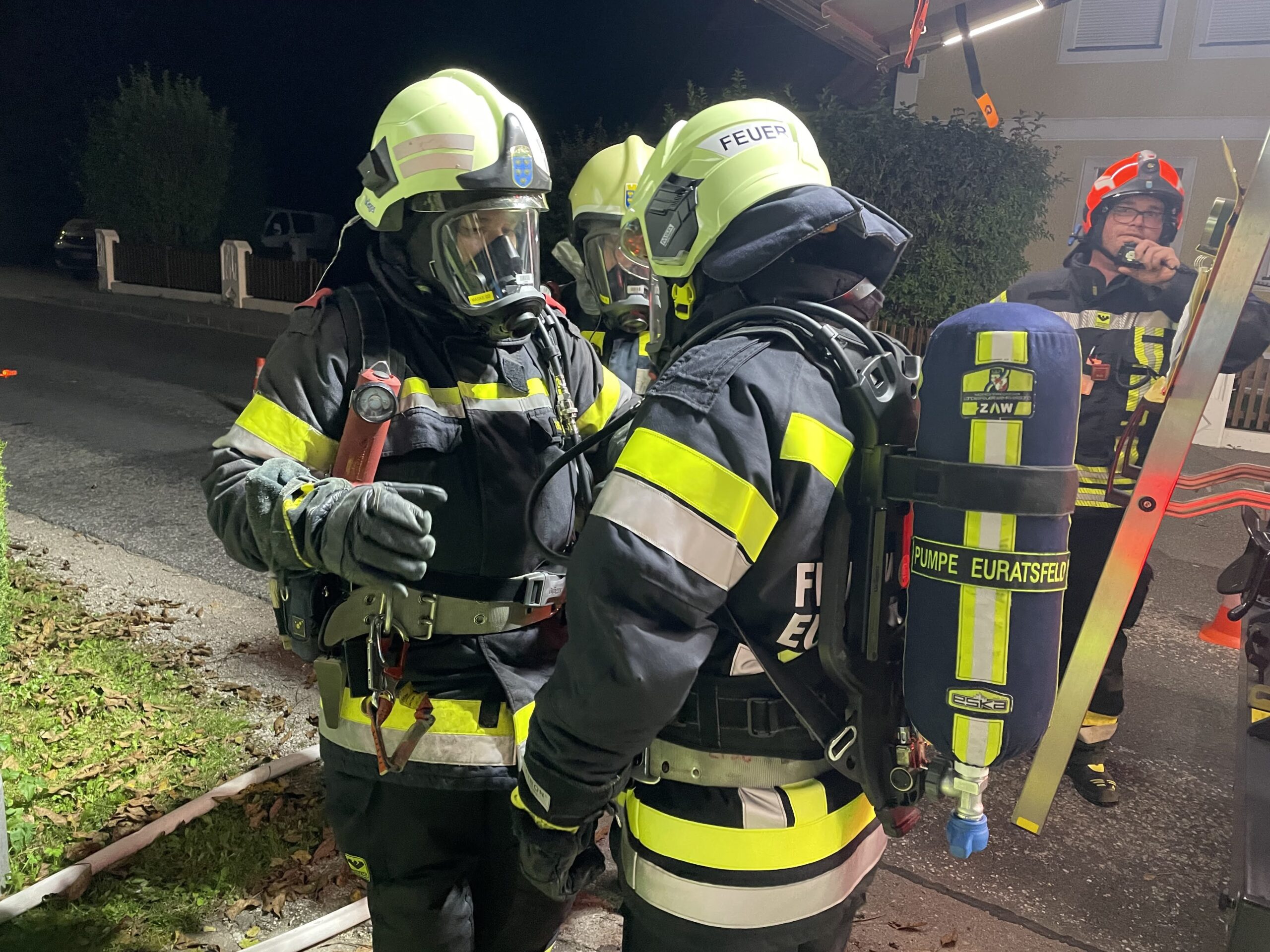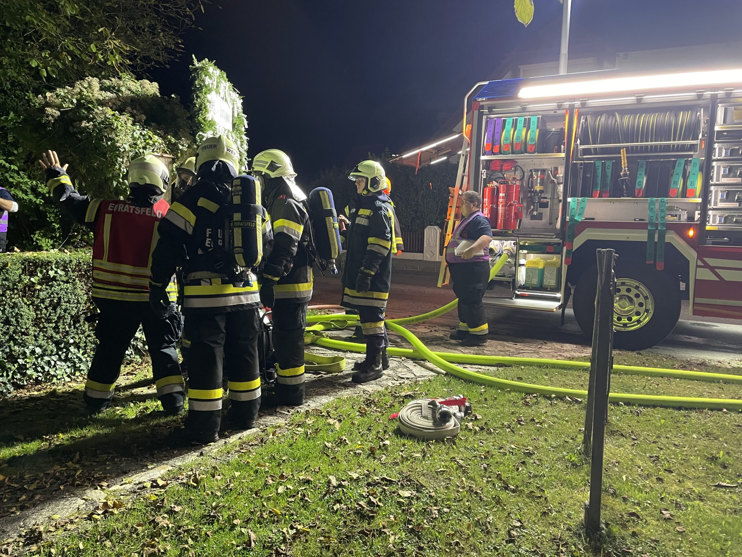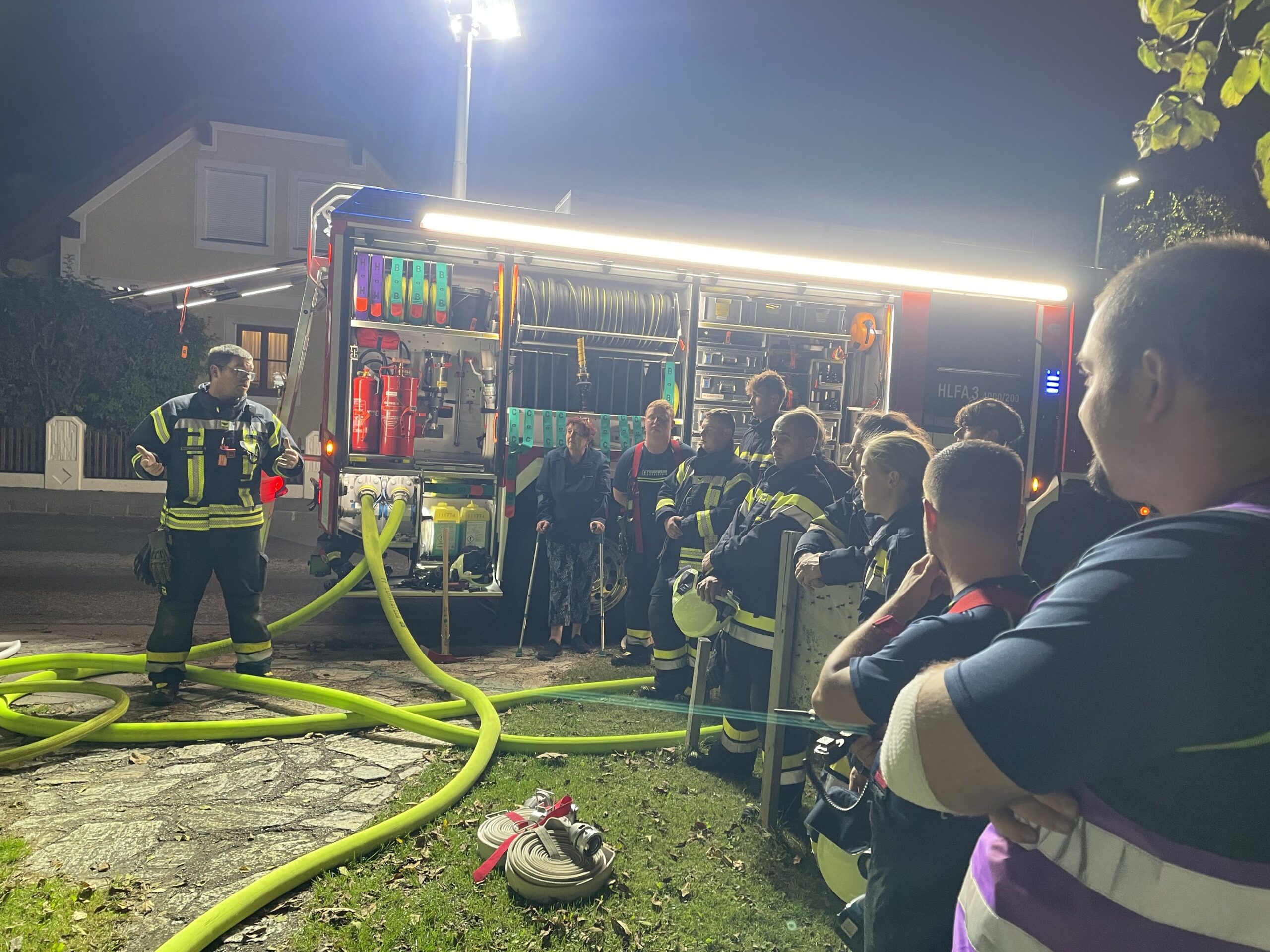 Im Rahmen der letzten Montagsschulung, stand die Zugsübung des ersten Zuges am Plan. Mit dem Stichwort „Zimmerbrand mit vermutlicher Menschenrettung“, startete die Einsatzübung. Bereits während der Anfahrt wurde die Mannschaft eingeteilt, welche sich sofort zum Ausrüsten begann. Der Einsatzleiter führte die Erkundung durch, während die Mannschaft die Übungsfläche sicherte und die Beleuchtung aufbaute. Bei der Erkundung wurde eine starke Verrauchung im Erdgeschoss und vermutlich zwei vermisste Personen festgestellt. Nach dem Einsatzbefehl wurde eine Löschleitung aufgebaut und ein Innangriff durch zwei Atemschutztrupps begonnen und fiktiv die Alarmstufe erhöht. Parallel zum Einsatz wurde eine weitere Löschleitung im Freien verlegt für den Schutz der Abluftöffnungen sowie die taktische Belüftung vorbereitet. Rasch konnten die beiden Personen gerettet werden und die Brandbekämpfung durchgeführt werden. Anschließend wurden Kontrollen mit der Wärmebildkamera und Belüftungsmaßnahmen durchgeführt. Bevor die Einsatzbereitschaft hergestellt wurde, fand vor Ort die Übungsnachbesprechung statt. Die vielen jungen Übungsteilnehmer konnten bei der sehr gut ausgearbeiteten Übung viele wichtige Erfahrungen sammeln.