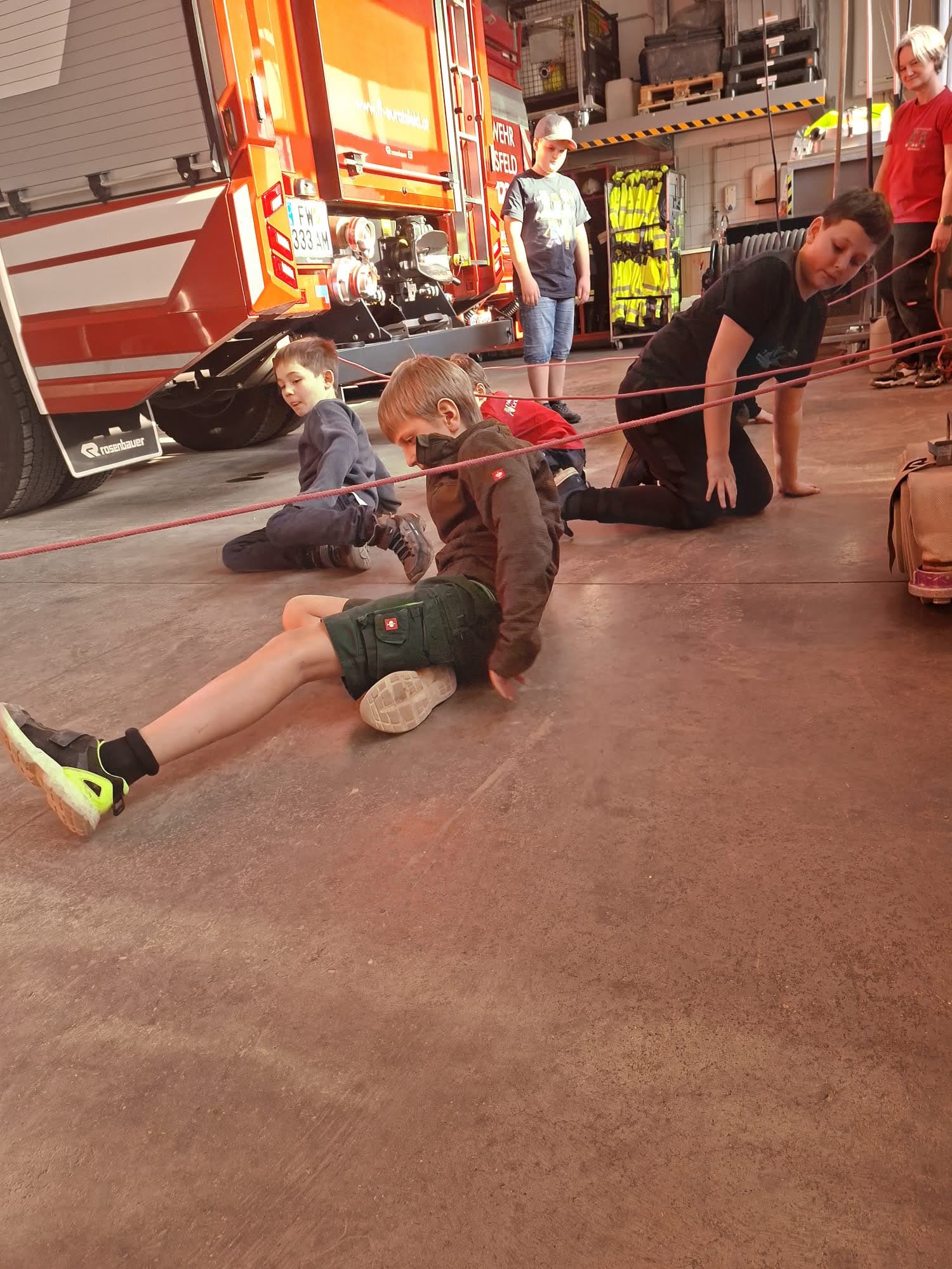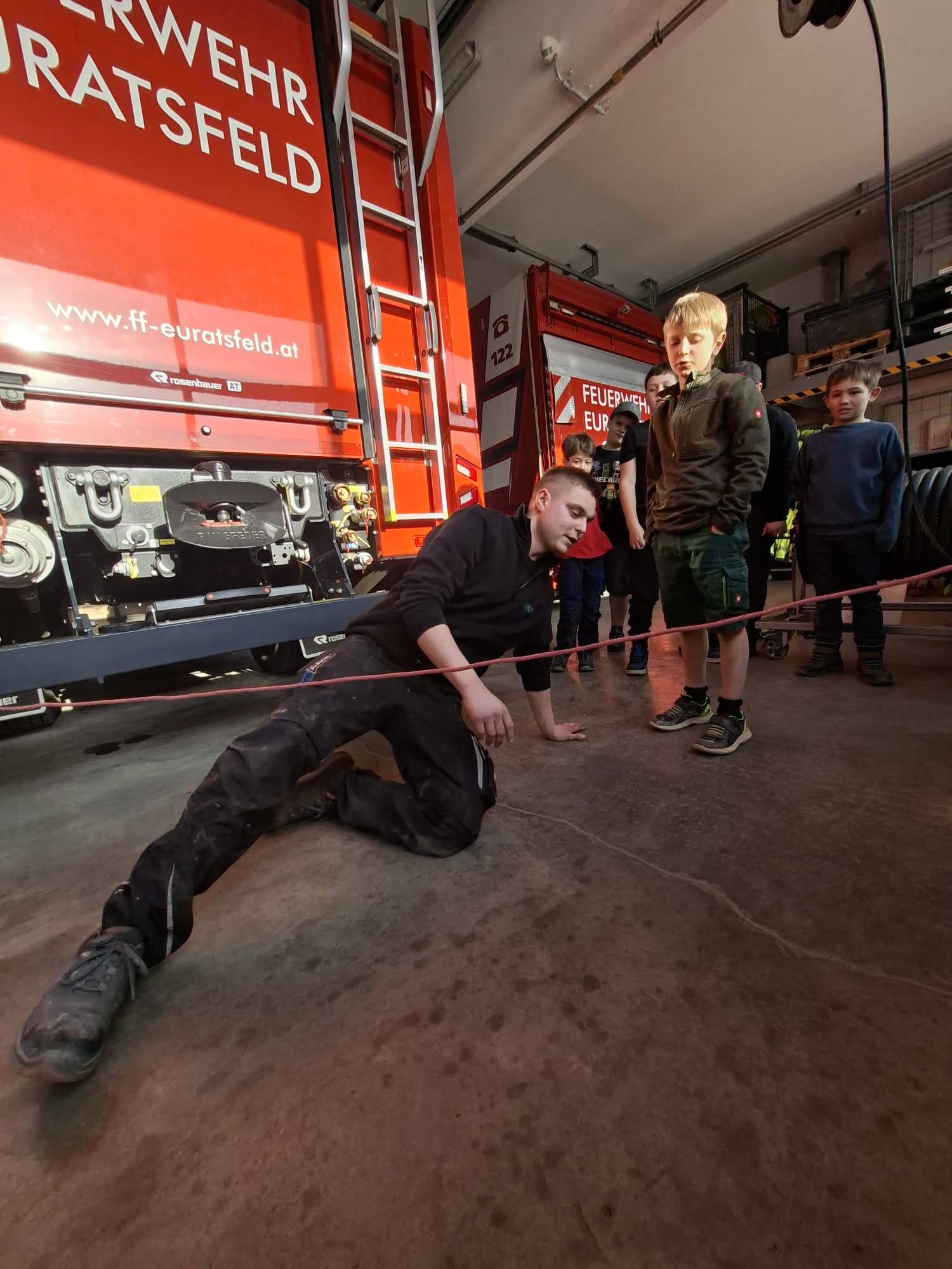 Bei der heutigen Kinderfeuerwehr-Stunde zeigte unser Atemschutz-Sachbearbeiter Kevin Furtner den Kindern, wie man sich sicher in verrauchten Räumen unter Atemschutz fortbewegt. Die Feuerwehrmitglieder lernten dabei grundlegende Techniken für den Einsatz in eingeschränkter Sichtweite.